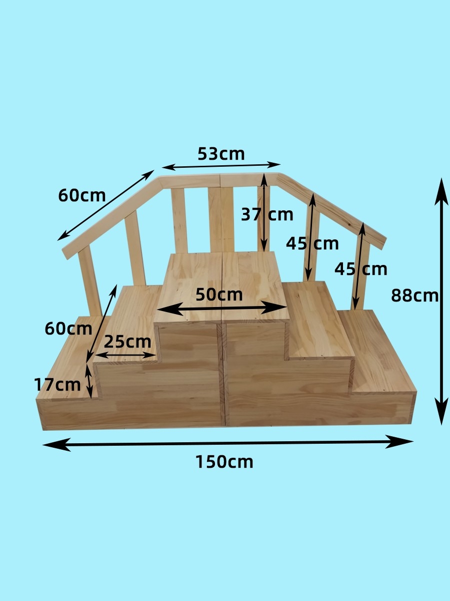 全梯長150厘米,梯寬60厘米(不含扶手),平臺高51厘米,全梯總高88厘米(含扶手)。